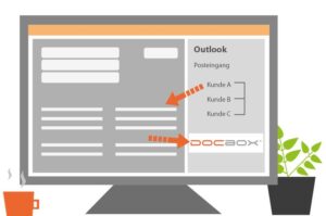 Sie haben mit dem DOCBOX® OutlookAddOn die Möglichkeit, gewünschte E-Mails mit Anhang ganz einfach per Drag&Drop innerhalb von Outlook (Versionen 2013, 2016, 2019 und Office 365) zu archivieren und problemlos wieder zu finden. Gleichzeitig können Sie bestimmen, dass E-Mail-Anhänge wahlweise auch separat abgelegt werden.